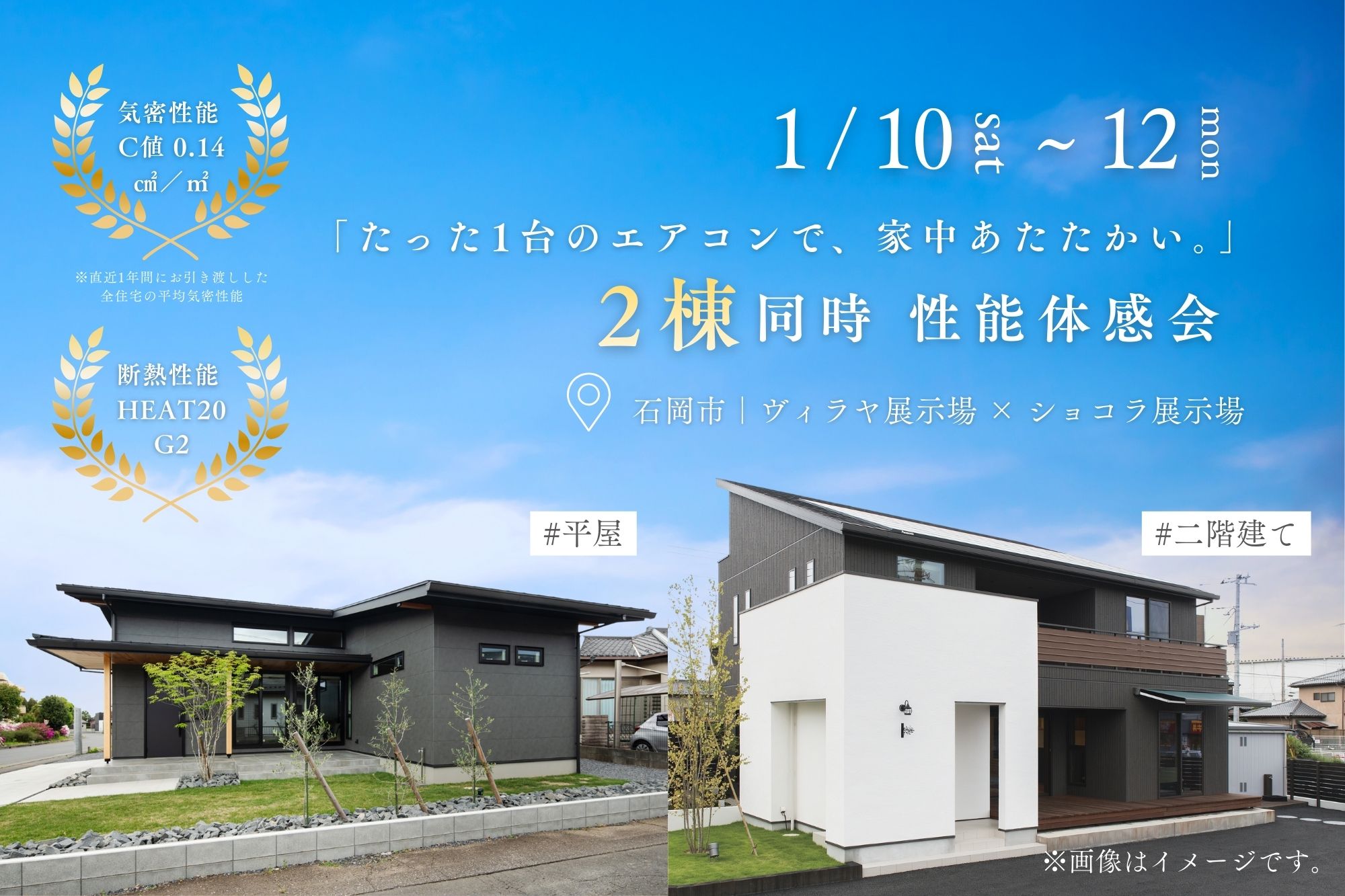 場所 茨城県石岡市正上内12-9 (ヴィラヤ展示場) / 茨城県石岡市石岡3918-3 (ショコラ展示場)