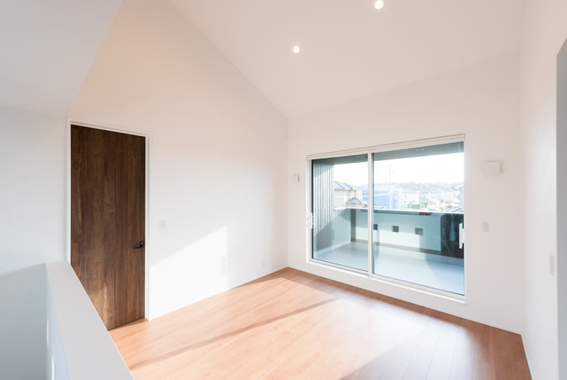 開放感と言えば、2階のファミリー室も高い勾配天井になっていて大好きです。いろいろな会社のモデルハウスを見て、2階はどうしても狭くなるものだと思っていたので、この広さは贅沢に感じます。