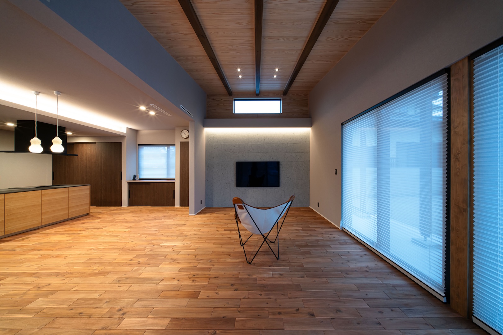 その想いに応えるべく、アヤプラスハウスの「トリプルA工法」を採用。 超高気密・高断熱の性能に加え、太陽光発電と蓄電池(V2H)を完備することで、一年中Tシャツで過ごせるほどの快適さと、万が一の時も安心できるレジリエンス性を実現しました。
